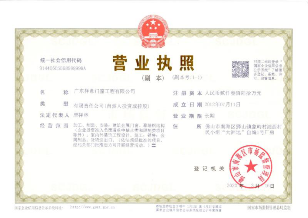 廣東祥意門(mén)窗工程有限公司是一家專(zhuān)注鋁合金門(mén)窗工程及門(mén)窗加工、制作的優(yōu)質(zhì)企業(yè)。公司憑著精湛的技術(shù)服務(wù)和優(yōu)良的售后服務(wù),已成功完成多個(gè)優(yōu)質(zhì)項(xiàng)目。